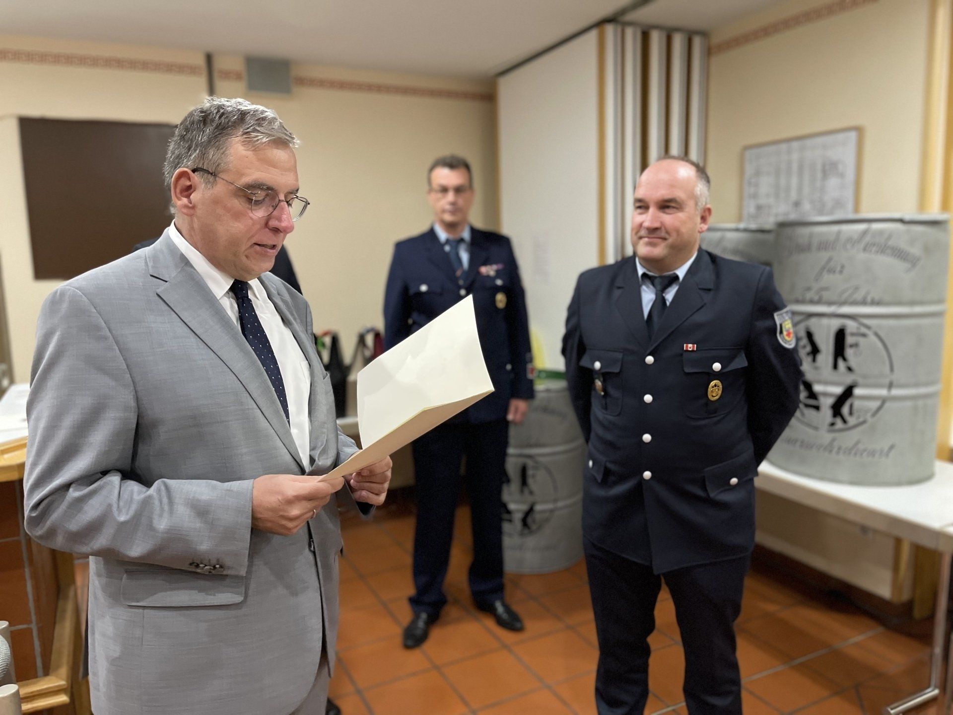 Der erste Beigeordnete Andree Stein verriet dabei in einem humorvollen Quiz, dass in den letzten 24 Jahren insgesamt 45 neue Feuerwehrfahrzeuge für die VG Montabaur beschafft wurden. Somit ist der gesamte Fuhrpark der Verbandsgemeinde einmal ausgetauscht wurden, da Feuerwehrfahrzeuge um die 25 Jahre genutzt werden.