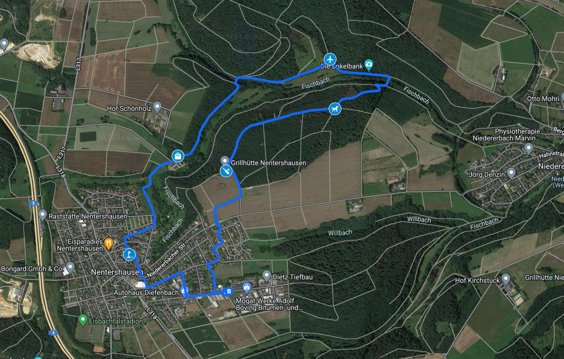 Die Rundstrecke geht dann wieder Richtung Nentershausen, wobei es nach Besuch der Spielstation beim Tennisplatz am Waldrand Richtung Görgeshausen weitergeht.
