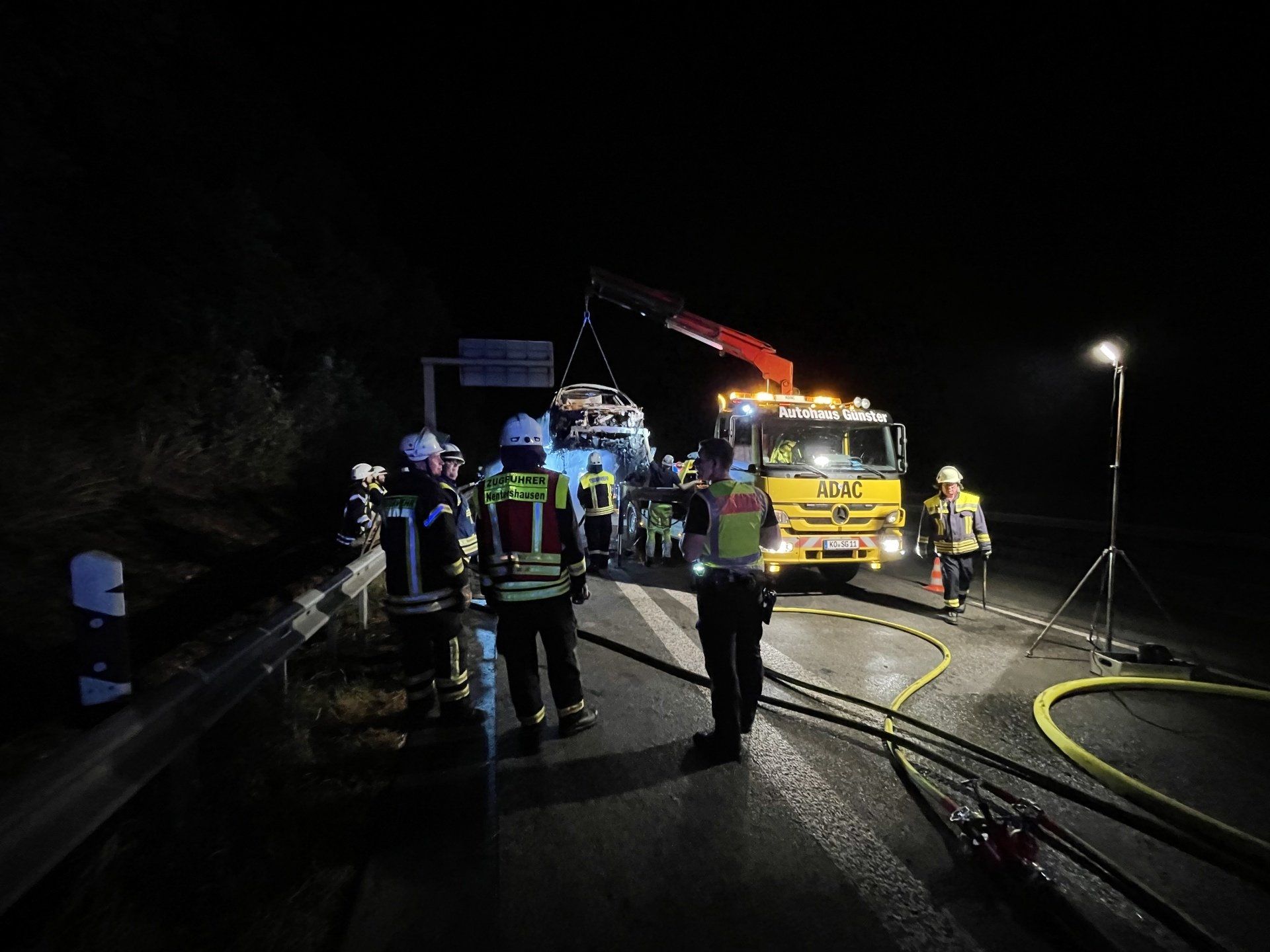 Mit Hinblick auf den zukünftigen gemeinsamen Autobahnabschnitt auf der A3 wurde das Zusammenspiel zwischen den beiden Feuwerwehren erfolgreich geübt.